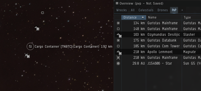 It was indeed, and out she jumped, returning a few minutes later and launching probes. Intermittently I caught site of a Heron, the Astero, a Magnate and a self-named Slasher. Oh well, this clearly wasn’t going to be a money-making session.